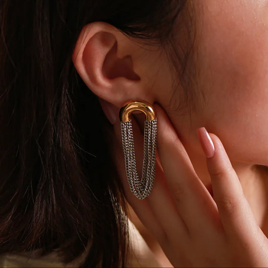 Time Capsule Earrings - 18K Gold-Plated Stainless Steel Semicircle Tassel