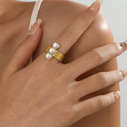 Aurora Ring - 18K Gold-Plated Stainless Steel with Opal Hearts