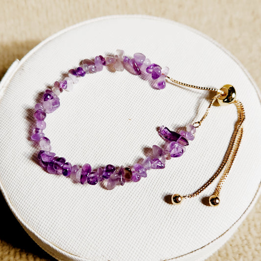Violet Serenade - Stainless Steel Natural Stones 14K Gold Plated Bracelet