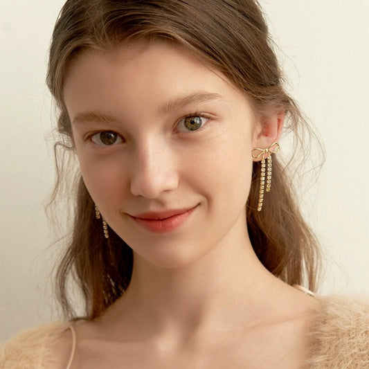 Artemis - 18K Gold-Plated Stainless Steel with Rhinestone Bow Knot Drop Earrings