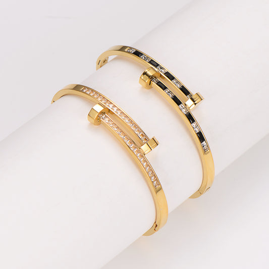 Bolt Nail Bangle - 18K Gold-Plated Stainless Steel with Rhinestones