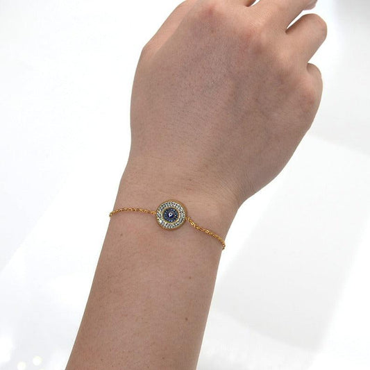 Evil Eye Bracelet - Gold Stainless Steel with Zircon
