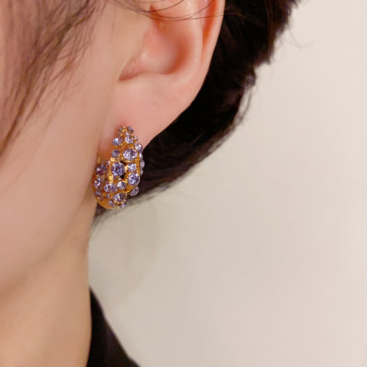 Violet Gleam Earrings - 18K Gold-Plated Copper with Purple Rhinestones
