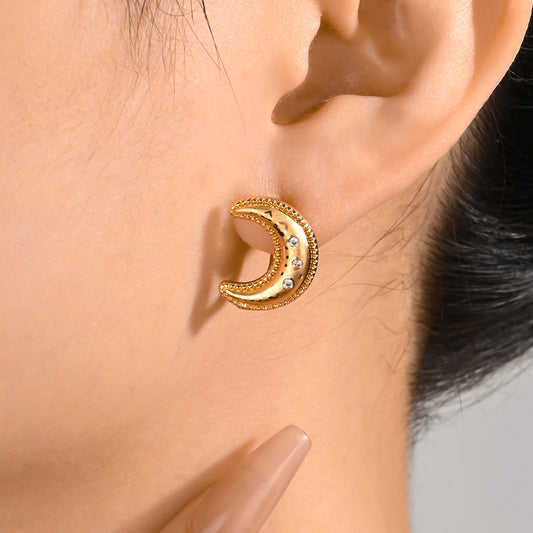Aadhira Studs - 18K Gold-Plated Copper Crescent Moon Earrings