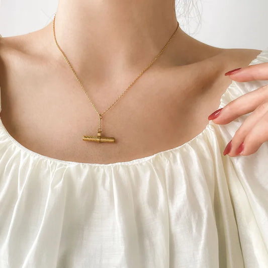 Balancia T-Bar Necklace - 18K Gold-Plated Steel with Hanging Pendant