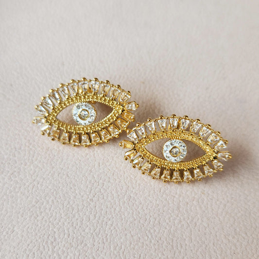 Luxora Evil Eye Stud Earrings – 18K Gold-Plated Steel with Rhinestones & Zircon