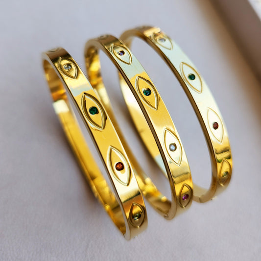 Evil Eyes Bangle - 18K Gold-Plated Stainless Steel