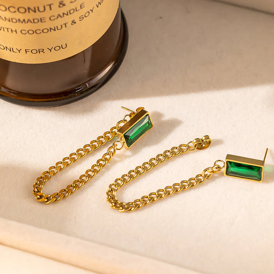 Verde - 18K Gold-Plated Stainless Steel Green Glass Inlay Earrings