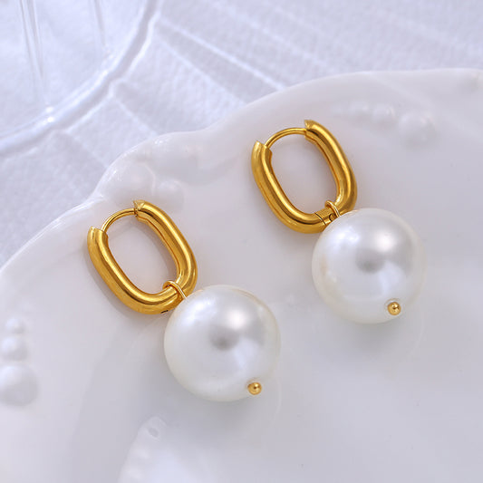 Solara - 18K Gold-Plated Stainless Steel Pearl Drop Earrings