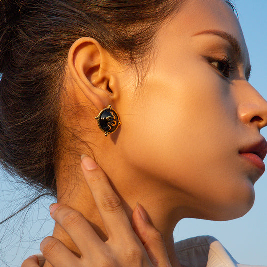 Midnight Medusa - 18K Gold-Plated Stainless Steel Earrings