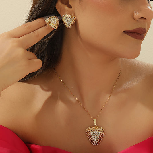 Aurelia - 18K Gold-Plated Stainless Steel Triangle Zircon Earrings & Necklace Set
