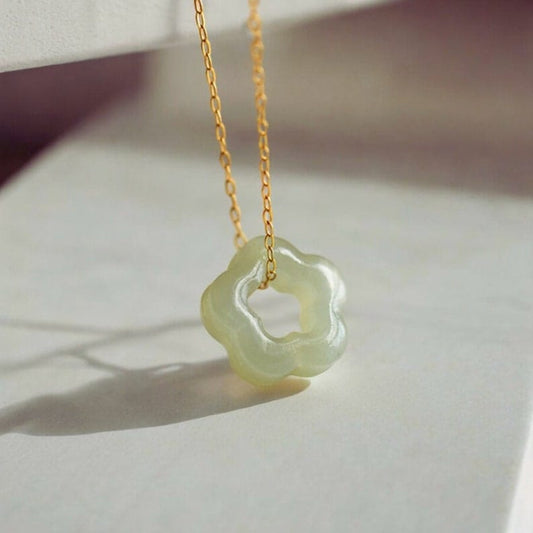 Jade Blossom Necklace – 18K-Gold Plated Stainless Steel with Jade