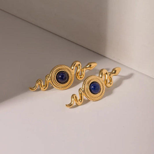 Serpentina - 18K Gold-Plated Snake Earrings with Blue Stone