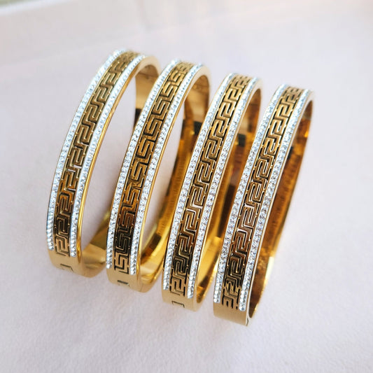 Athena - 18K Gold-Plated Stainless Steel Rhinestone Roman Key Bangle